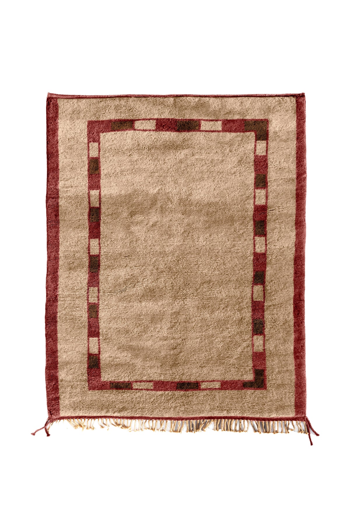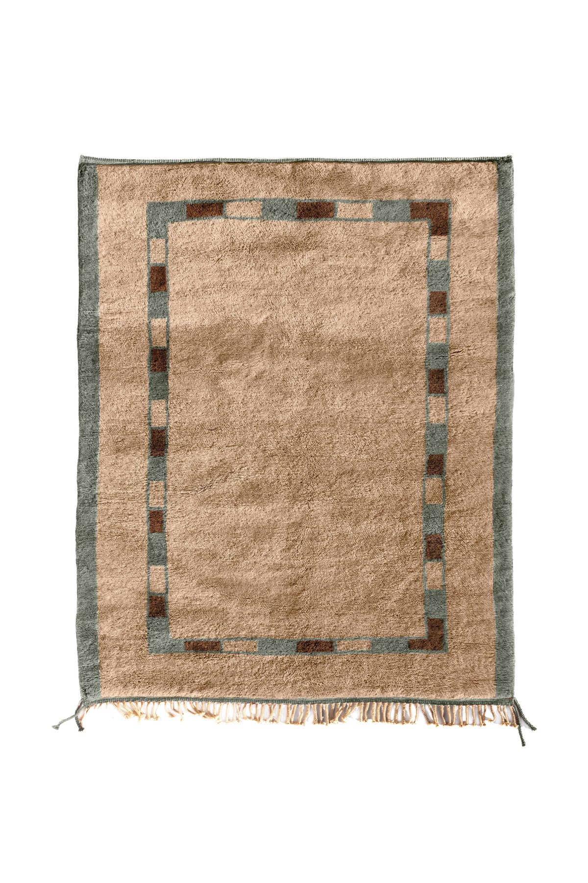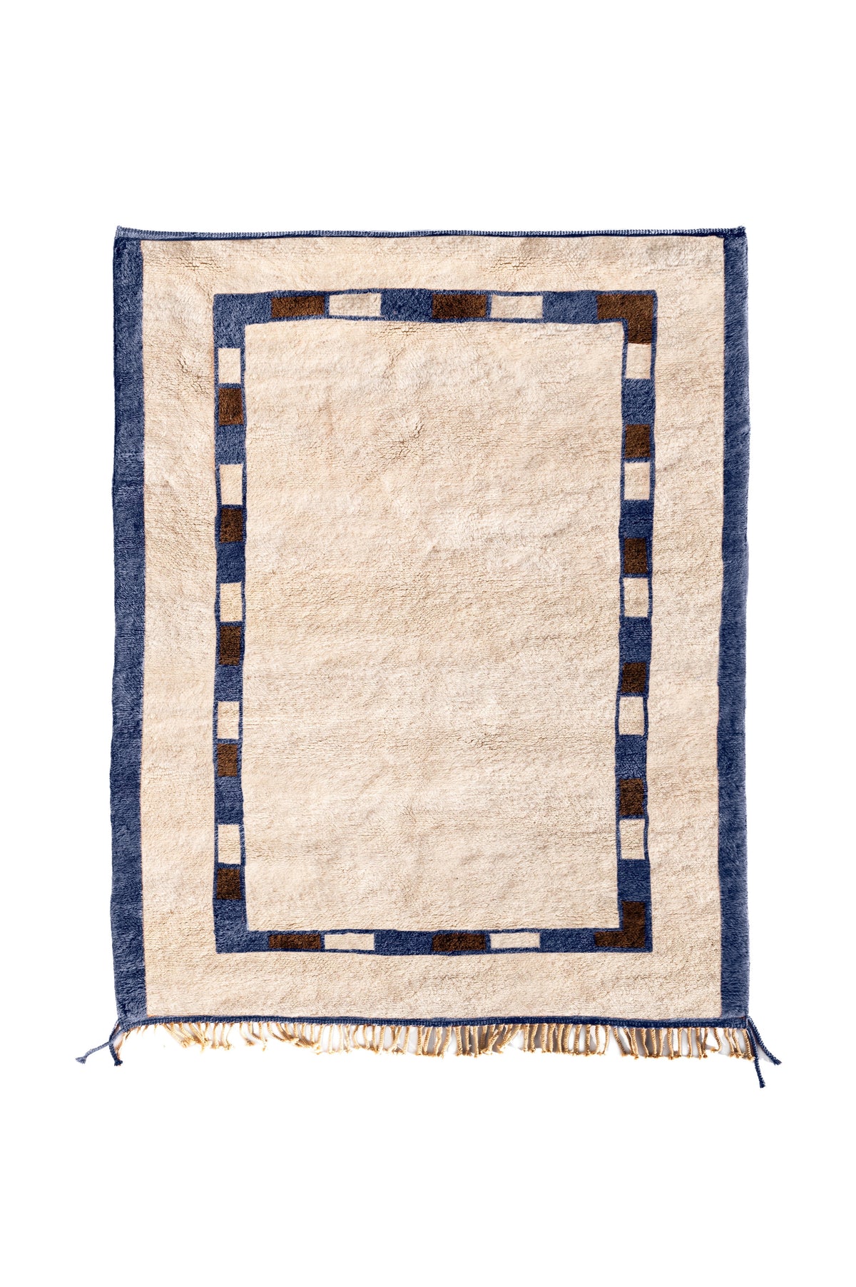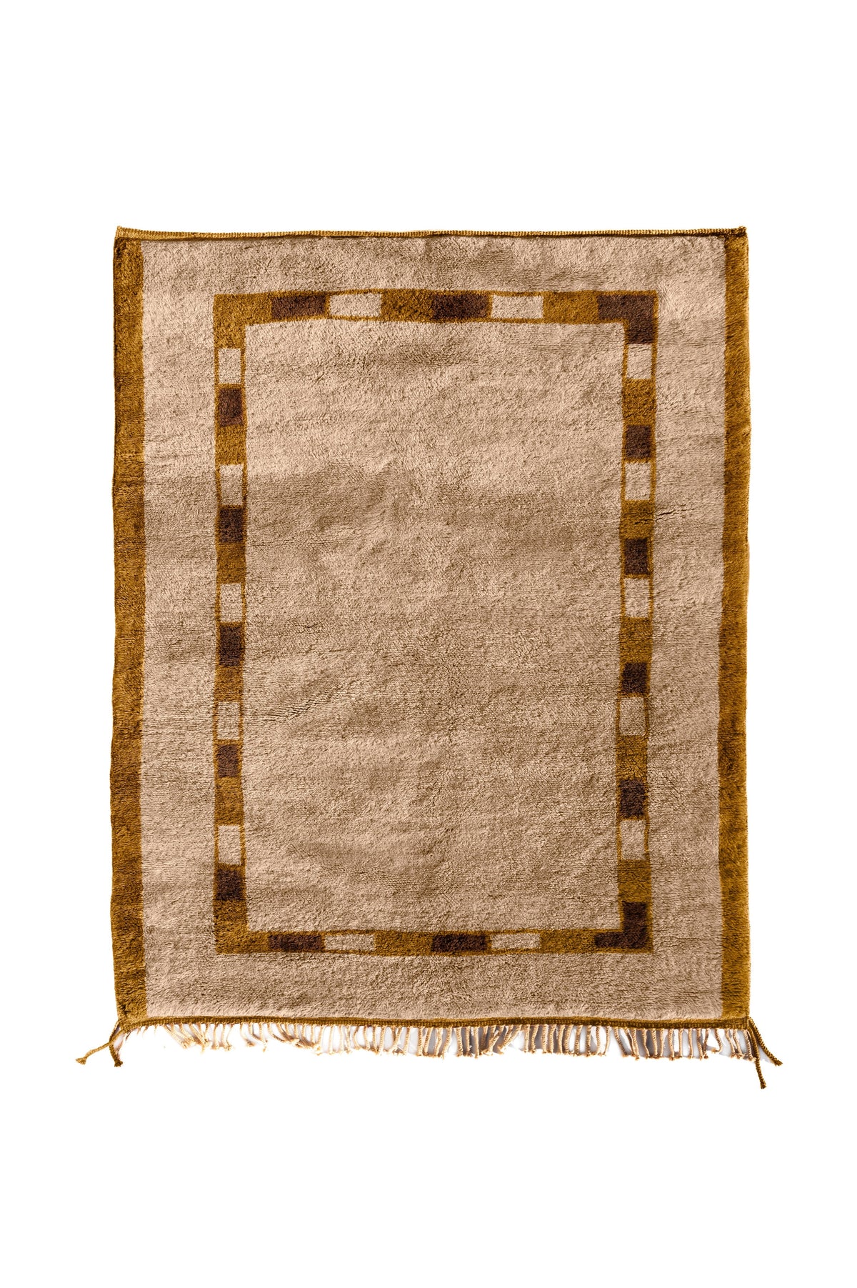 The subtle contrast between border and center creates a quiet rhythm, inviting the eye to rest within its balanced geometry. Hand-knotted from natural wool, Limina blends thoughtful structure with gentle texture, a serene foundation for any space.
