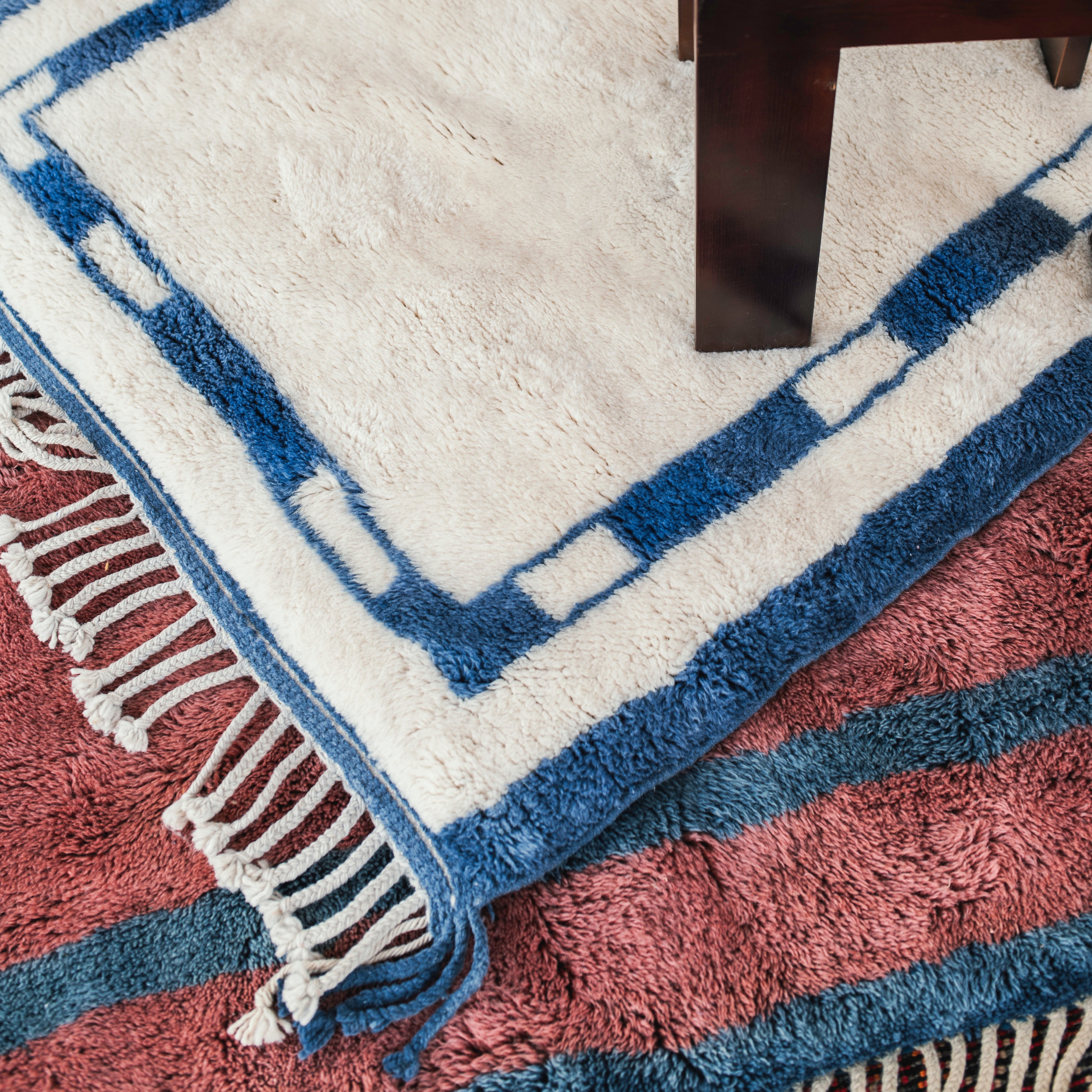 Bordures finds its rhythm in the simplicity of a double line, a quiet frame that gives shape and balance to the rug. It carries the clarity of architecture yet holds the softness of the hand, where Berber tradition meets a modern eye. Hand knotted in Morocco with natural wool, it offers a grounding presence, both graphic and gentle, made to live with and grow into.